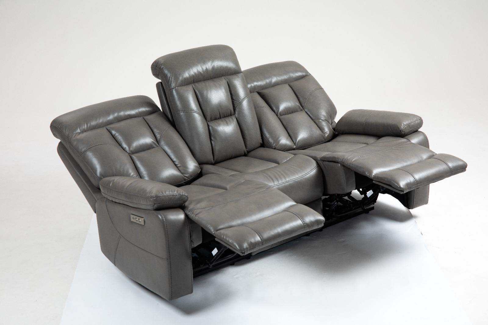 Florian 3+2+1 Grey Leather Recliner Sofa