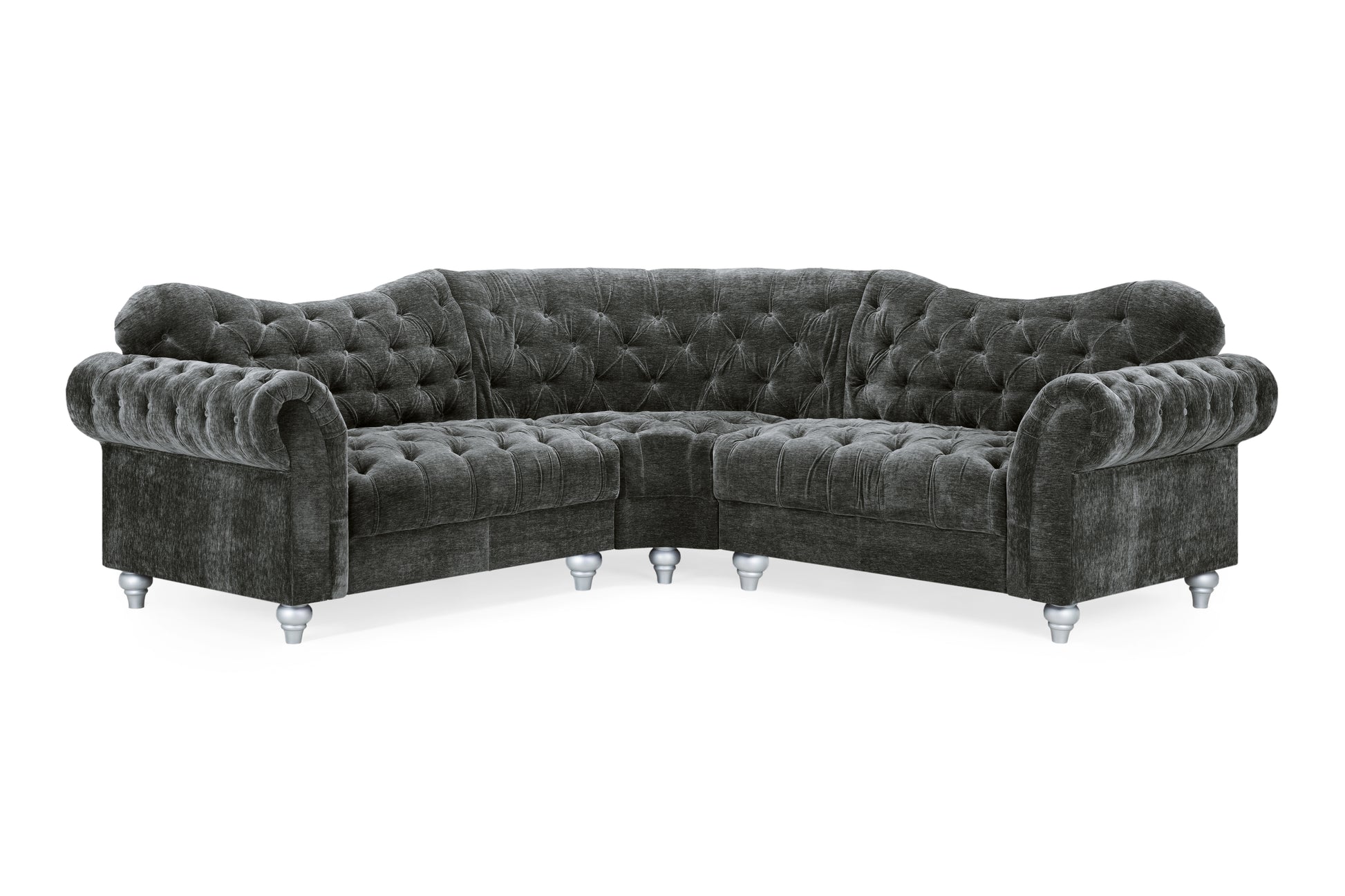 The Jubilee Grey Fabric Corner Sofa offers a grand seating solution for larger living spaces. This spacious corner sofa combines the classic Chesterfield design with contemporary comfort, perfect for family gatherings or entertaining guests.