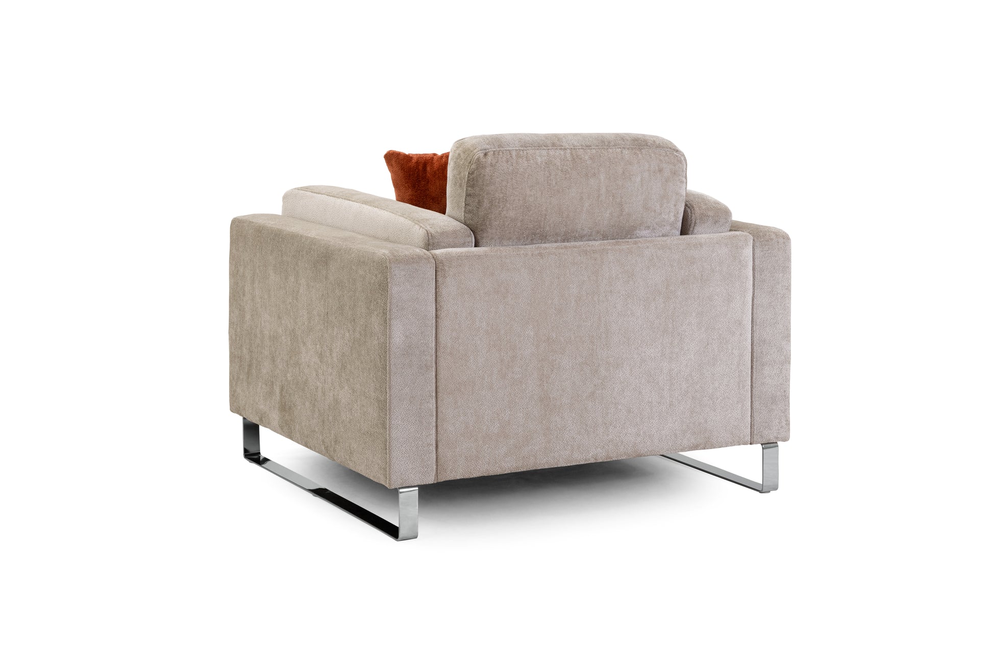 The Kingston Beige Chenille Armchair brings the same luxurious comfort of the sofa range to a single-seat design. Perfect as an accent piece or additional seating, it features soft chenille upholstery and a modern chrome base.