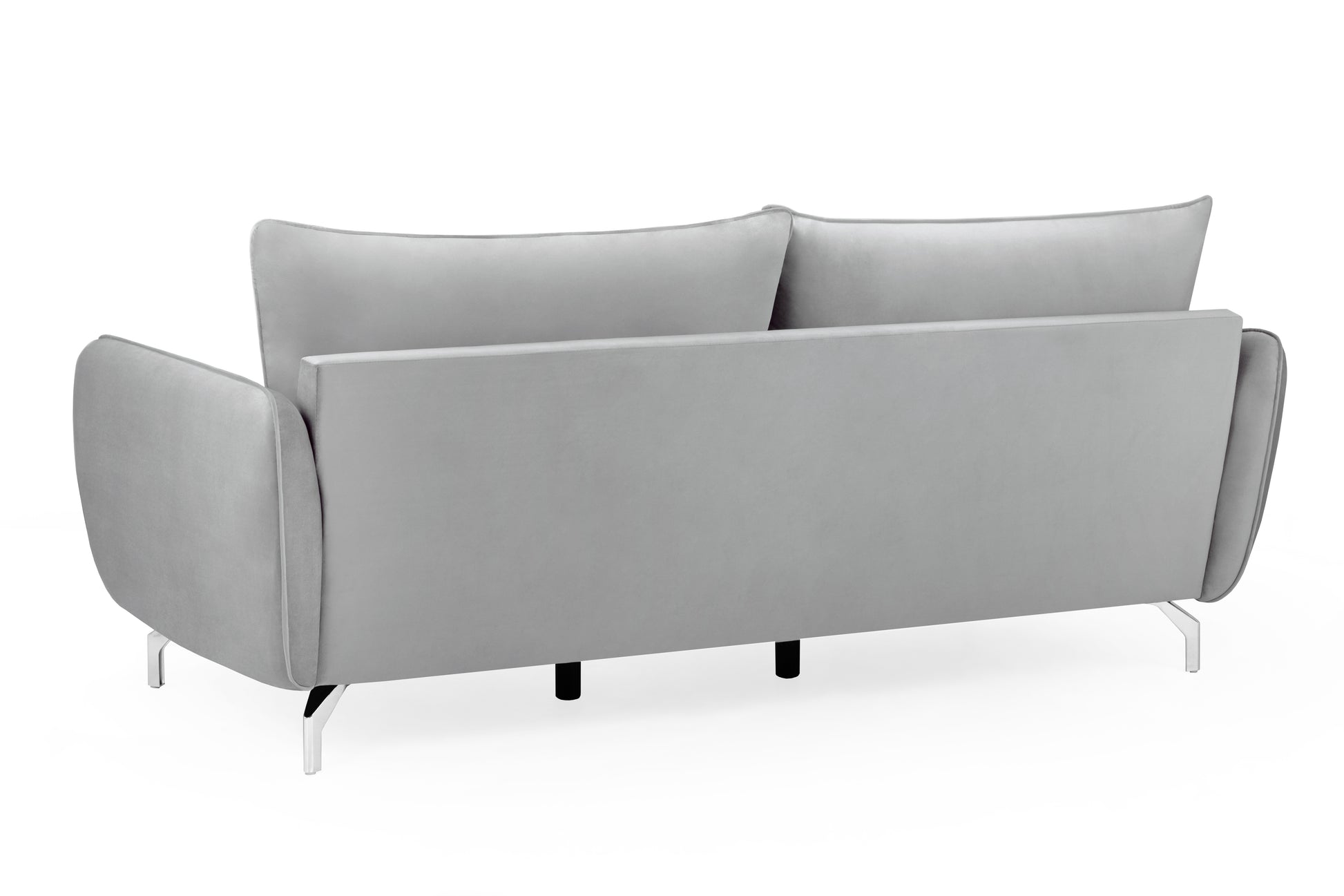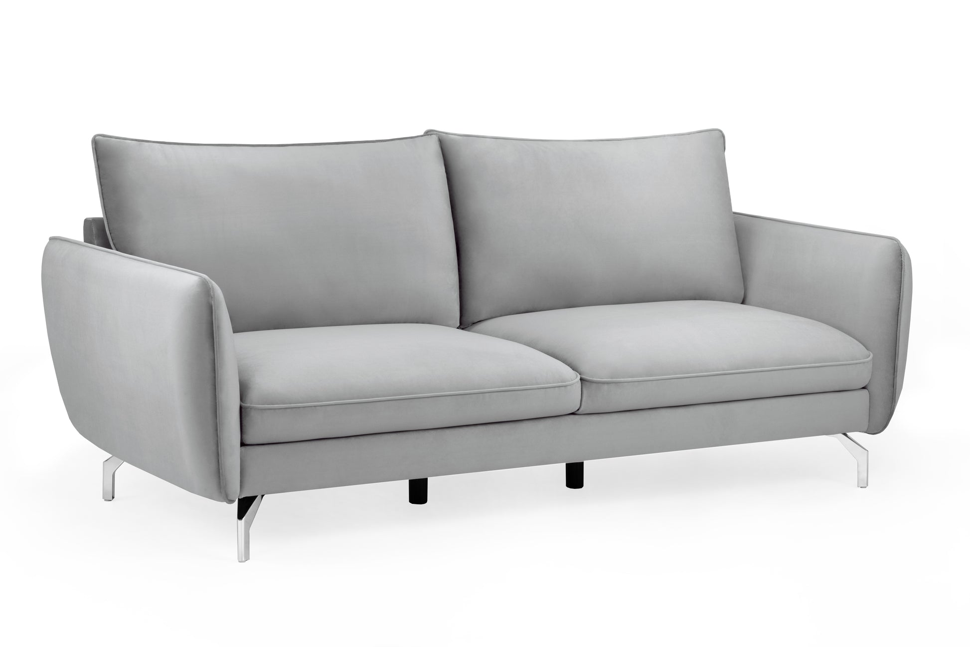 The Lavard Grey Velvet 3 Seater Sofa offers generous seating with its contemporary design. Upholstered in soft velvet fabric, it features removable cushions and silver metallic feet for a touch of modern elegance.