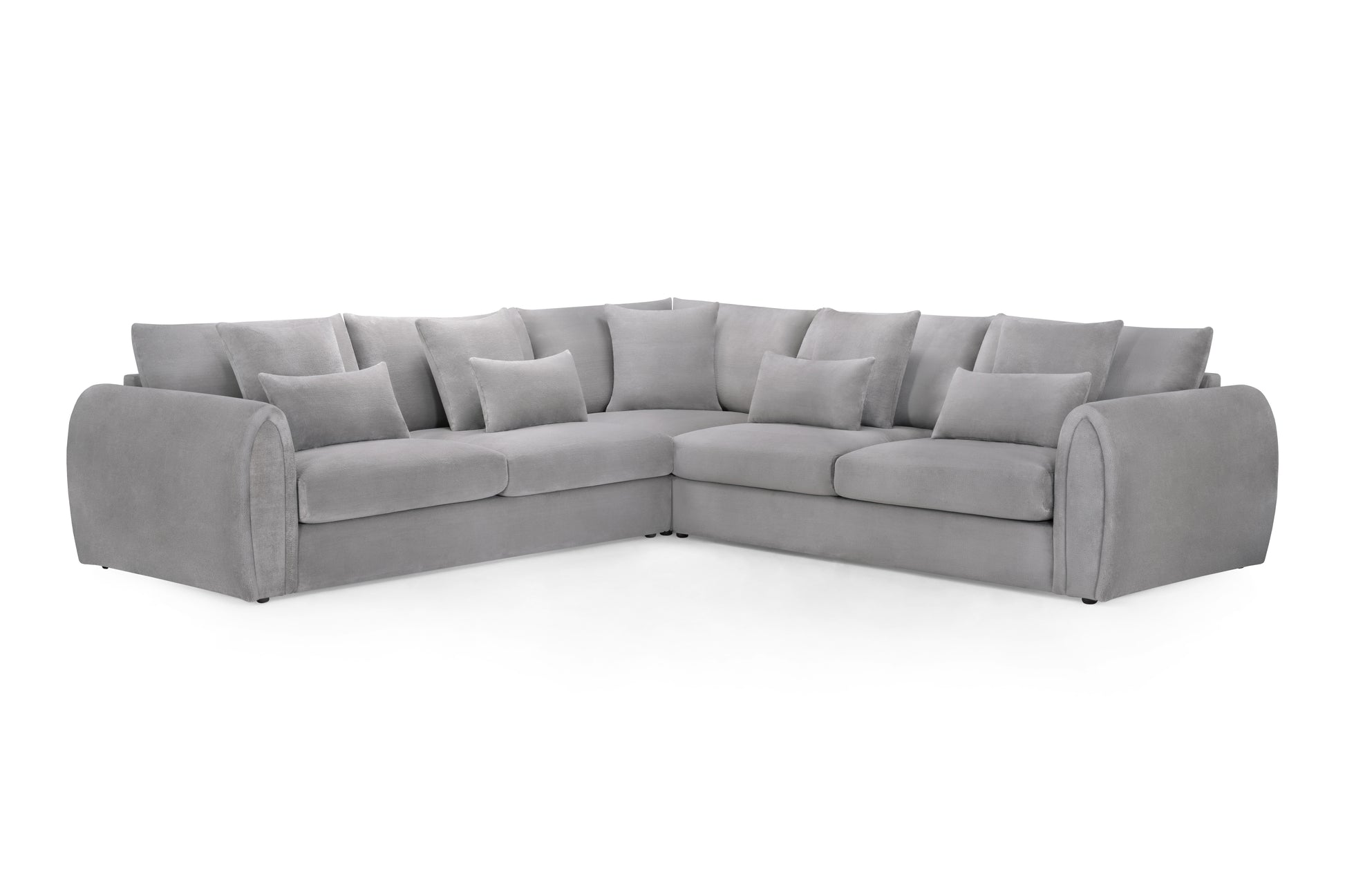 The Mirabel Grey Velvet Large Corner Sofa offers generous seating with its plush velvet upholstery and spacious design. Perfect for family gatherings or luxurious lounging.