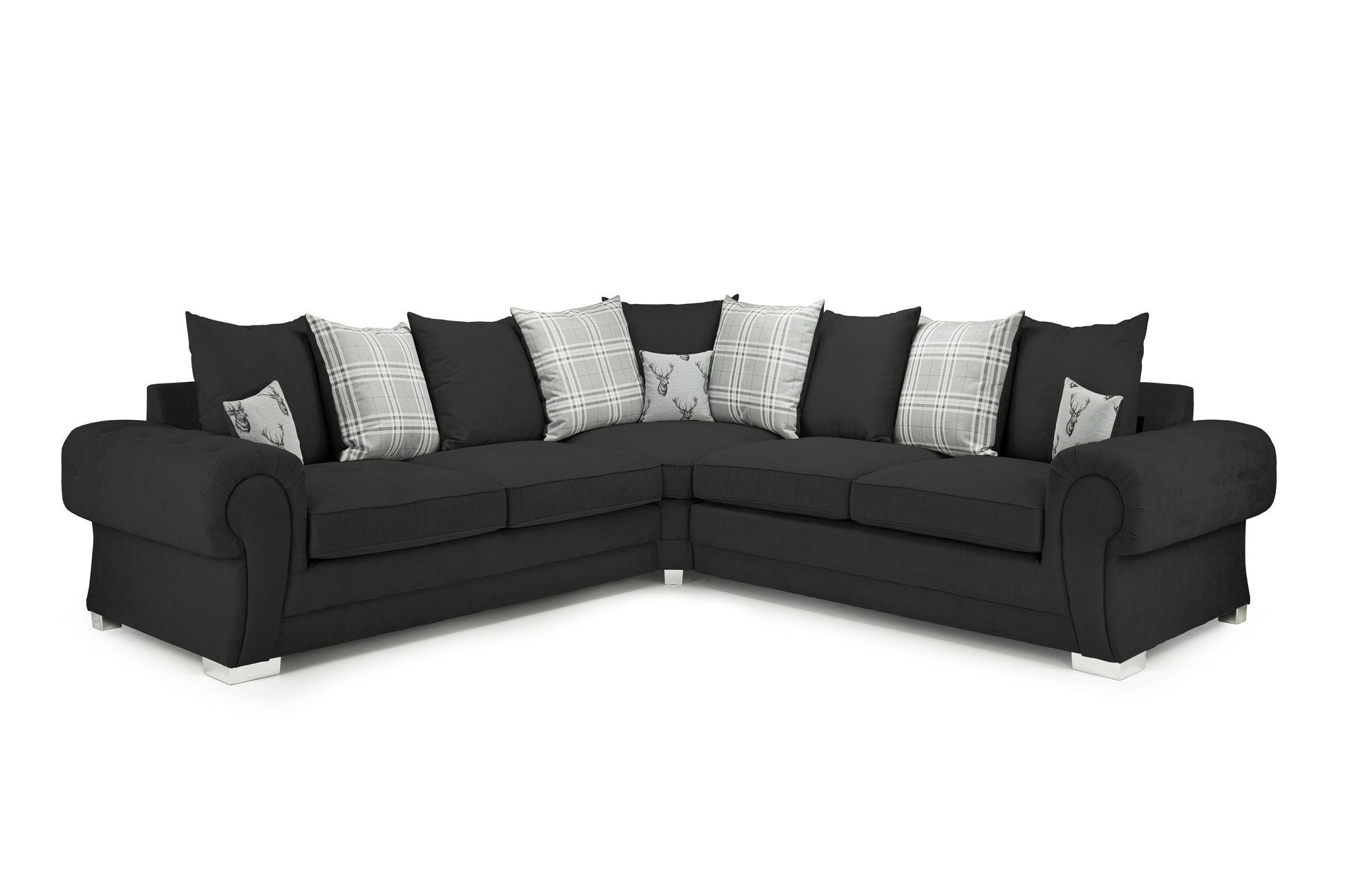 Verona Large Black Fabric Scatter Back Corner Sofa